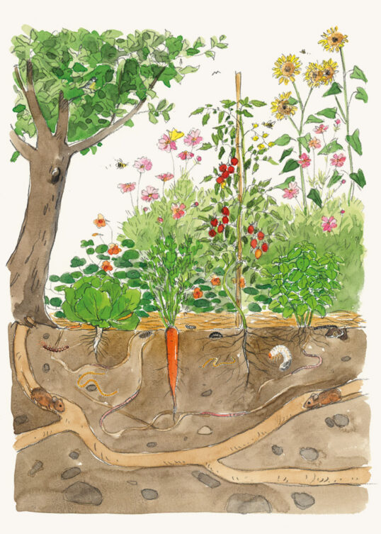 Cette année, Pascal Aspe vous propose de faire un tour d’horizon des bonnes pratiques du jardinage biologique, tel qu’il l’a pratiqué pendant 15 ans au cœur des jardins de Terre vivante. Ses textes vivants et malicieux sont illustrés par les très jolies aquarelles naturalistes de Maëlle Le Toquin.