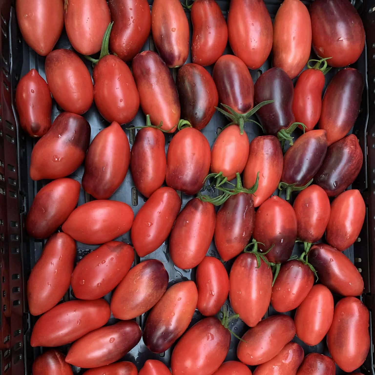 La tomate Slivka Gurman est une variété originaire de Russie. Allongés et pointus, ses fruits rose foncé, riches en anthocyanes, prennent une teinte noir bleuté sur les parties exposées au soleil. De couleur et de forme originale, cette variété très productive offre des grappes de plus d’une dizaine de fruits. Outre l’originalité de ces derniers, un des atouts majeurs de la variété est sa capacité à supporter les variations climatiques et sa faible sensibilité aux maladies cryptogamiques. Douce et délicatement parfumée, comme toutes les variétés de tomate anthocyanées, son goût sera bien meilleur à pleine maturité.
